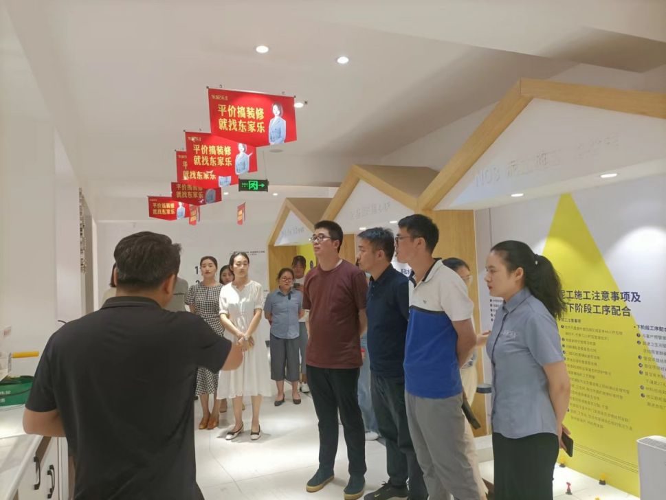 2022年6月29日下午16:00湖南工藝美術職業學院校領導胡副院長、劉書記、胡主任及學校老師來到東家樂家裝袁家嶺分公司進行參觀調研。