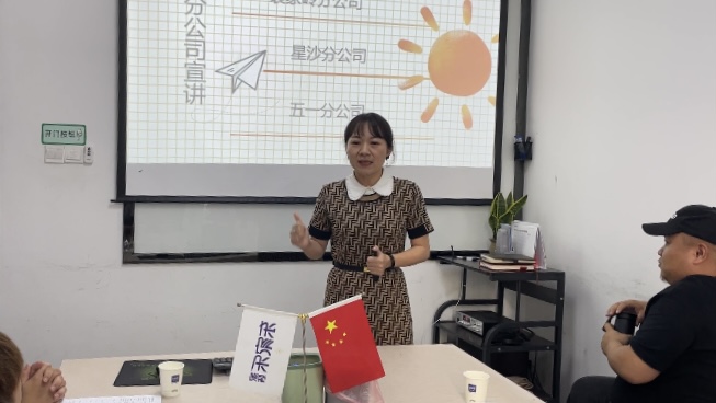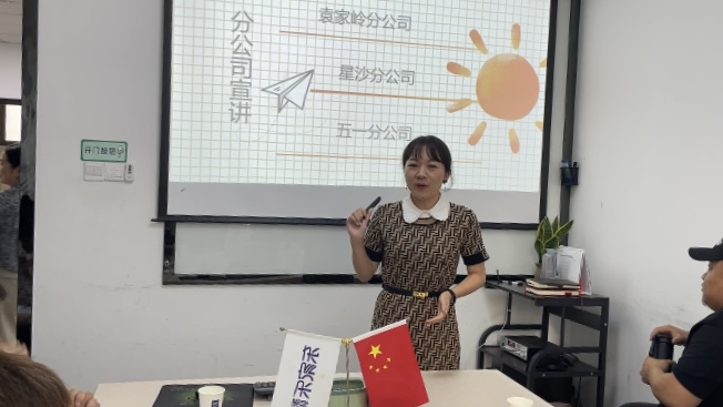 首先,是我們袁家嶺分公司總經理龍總給我們的學生們展示了從團隊氛圍、團隊能力、團隊成員風采幾個維度介紹了門店優秀的團隊和個人,再從門店現有的“硬軟件”介紹出了自己的優勢。