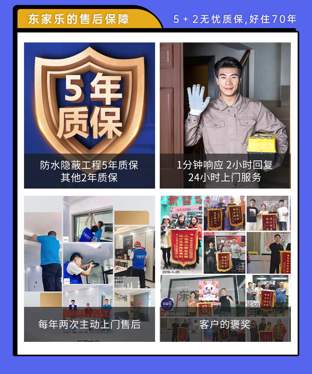 東家樂家裝,一家集室內新房裝修設計、舊房翻新、別墅大宅設計的裝修公司,各類風格經典裝修案例,致力于為業主打造高標準高質量的裝修服務。
