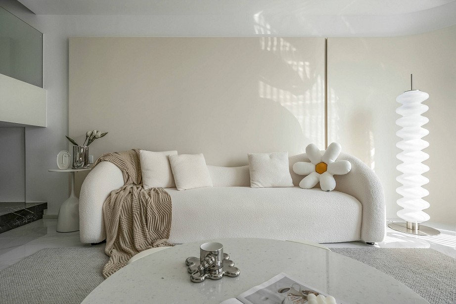 在奶油風格的設計中,對造型的掌握主要在于家具造型的選擇和空間硬裝造型的設計。家具造型盡量選擇圓潤飽滿、柔軟、柔軟的造型,讓空間看起來柔軟、可愛、溫暖;硬裝造型盡量簡潔干凈,可以設置一些曲面、橢圓形或弧形造型,讓空間更加溫和有力。