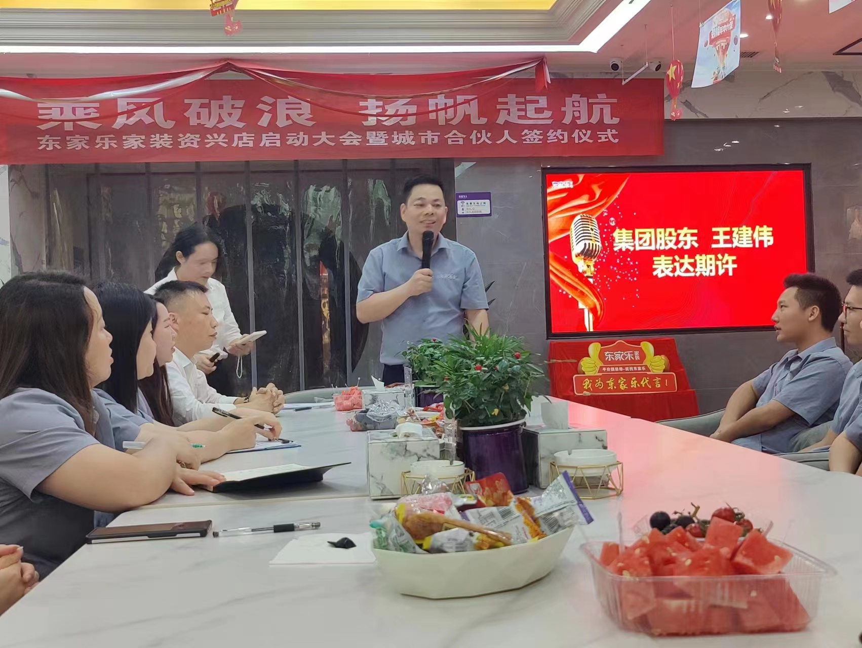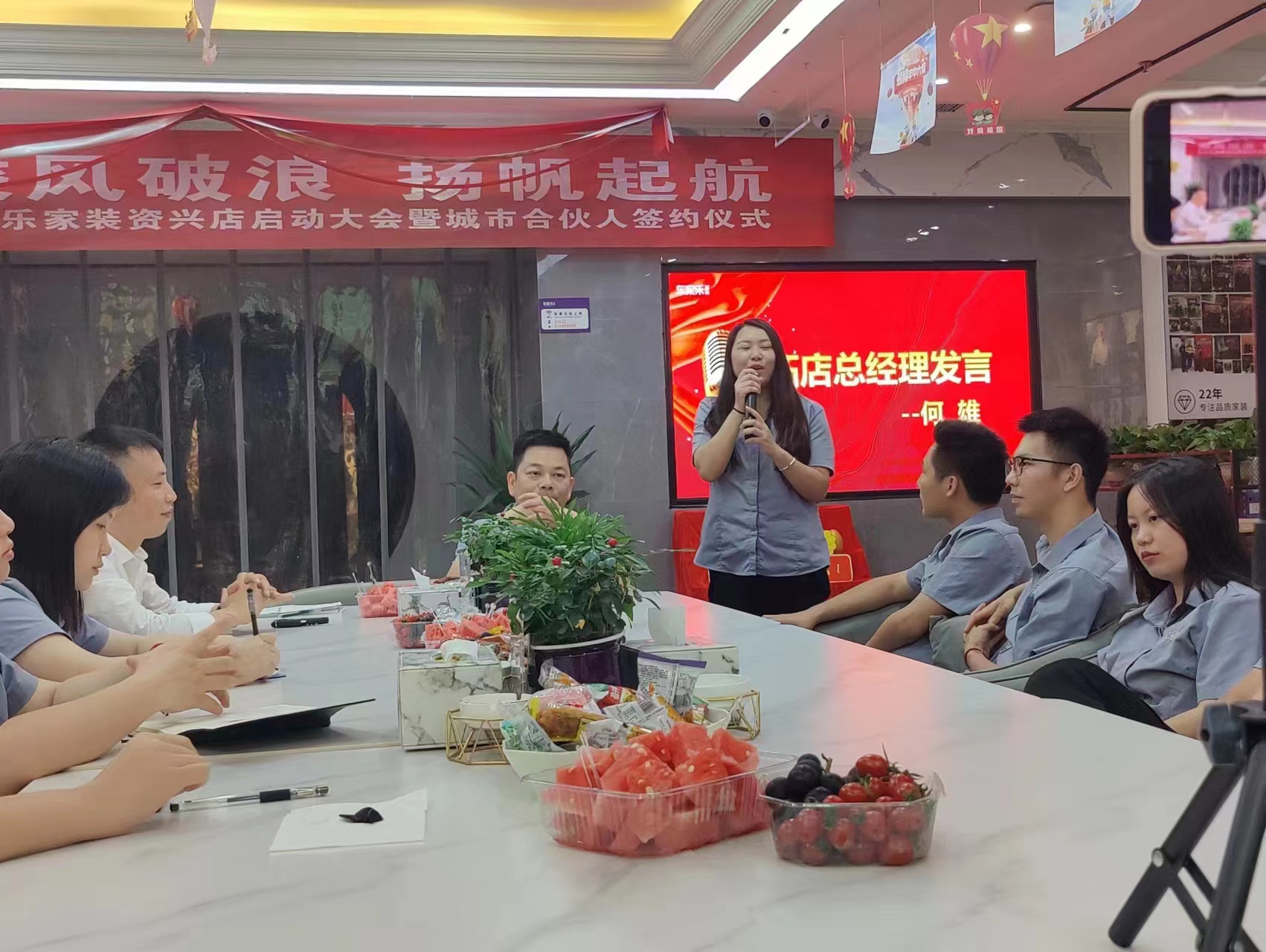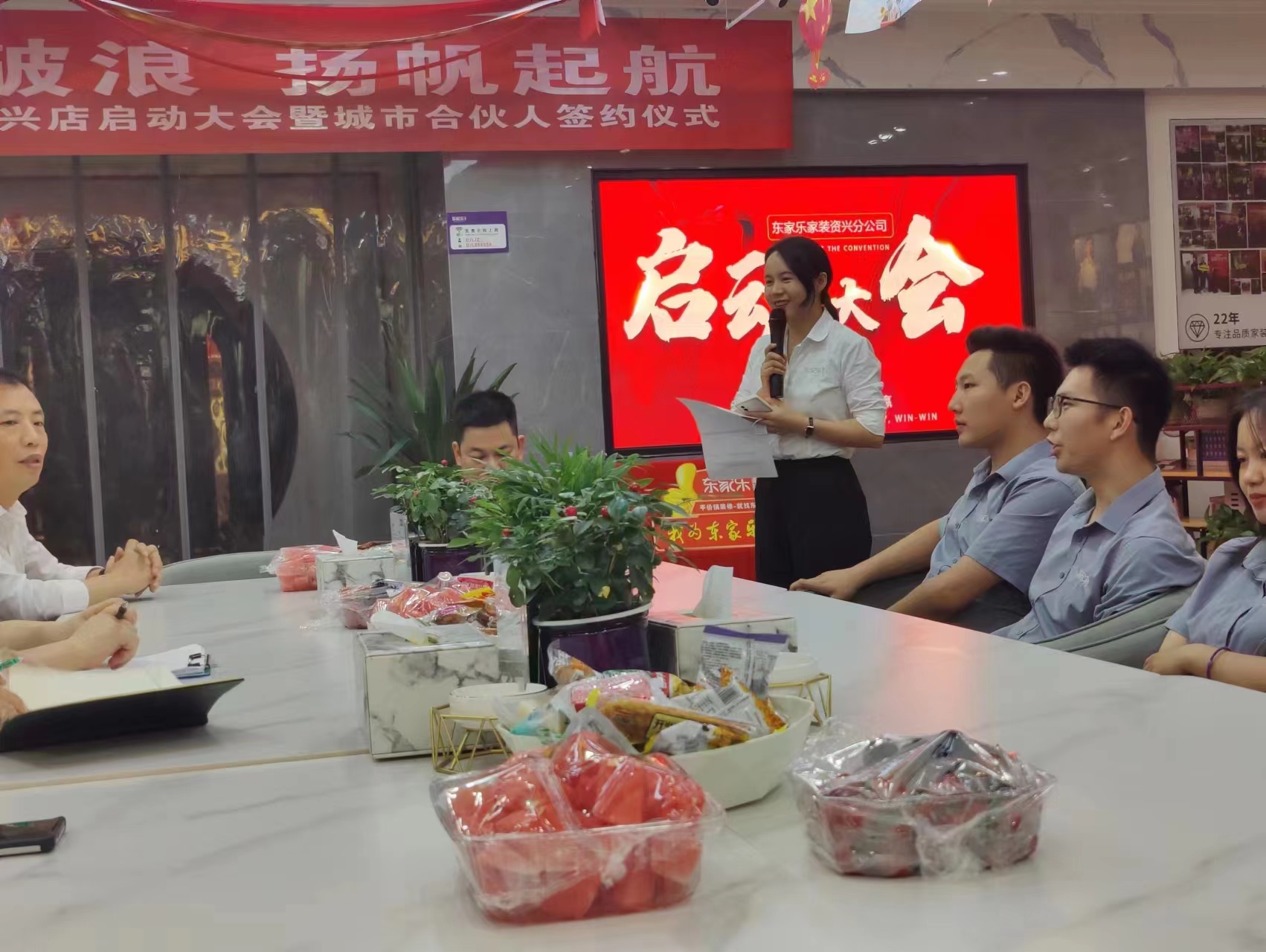 6月5日下午,東家樂家裝資興分公司拓店啟動大會暨簽約儀式于郴州分公司圓滿舉行;資興歷史悠久、人文薈萃,抱著堅持幫助千萬家庭快樂裝修的使命,東家樂家裝在此也揚帆起航!