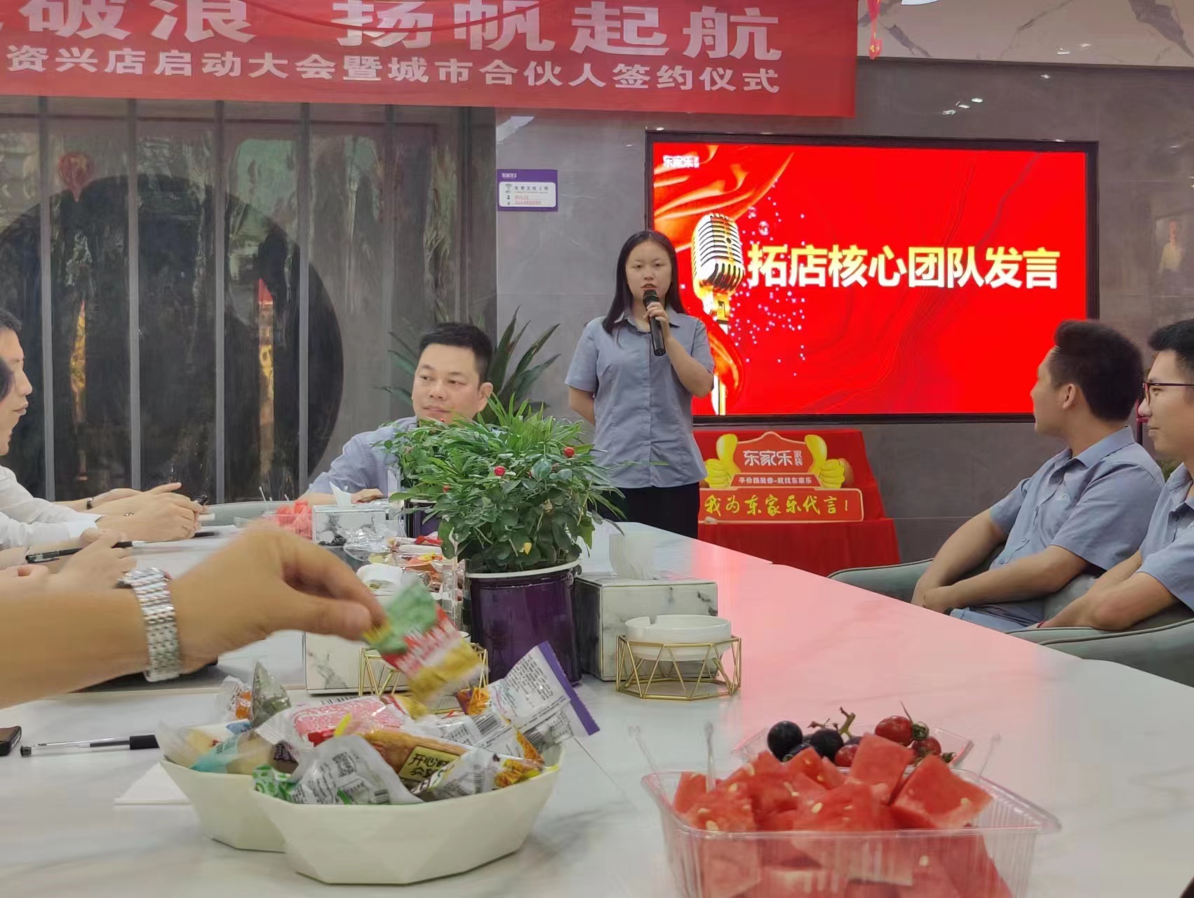 資興拓店核心團隊發言,感恩東家樂家裝為我們提供的這個平臺,也感謝團隊的每一位小伙伴的信任,我們有信心去挑戰,保證不負眾望完成目標。