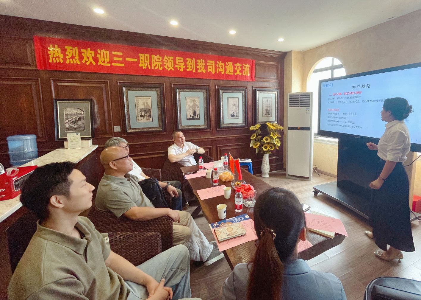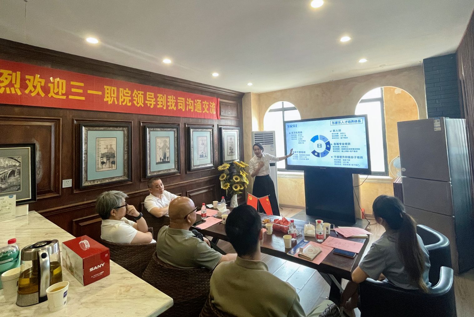 校方領(lǐng)導(dǎo):學(xué)院辦學(xué)理念是希望學(xué)生學(xué)會畫效果圖、畫施工圖、培養(yǎng)出營銷人員、進(jìn)入施工現(xiàn)場學(xué)習(xí)、學(xué)預(yù)算;需要企業(yè)與學(xué)校雙方進(jìn)行綜合培訓(xùn),加強(qiáng)學(xué)生的生活經(jīng)驗,和了解企業(yè)的規(guī)范等。本次來東家樂進(jìn)行訂單班溝通交流,主要想把三一職院和東家樂的優(yōu)勢進(jìn)行結(jié)合。在交流溝通階段,安教授、黃教授就響應(yīng)國家政策號召的職業(yè)技術(shù)教育與東家樂技術(shù)性訂單班的合作進(jìn)行深入溝通和探討,并對后續(xù)的發(fā)展前景進(jìn)行展望。東家樂董事長表示,職業(yè)技術(shù)教育強(qiáng)調(diào)動手和實(shí)操能力,與我們后端交付儲備人才很匹配,后續(xù)深入合作為企業(yè)后端交付、甚至為行業(yè)都非常有意義。