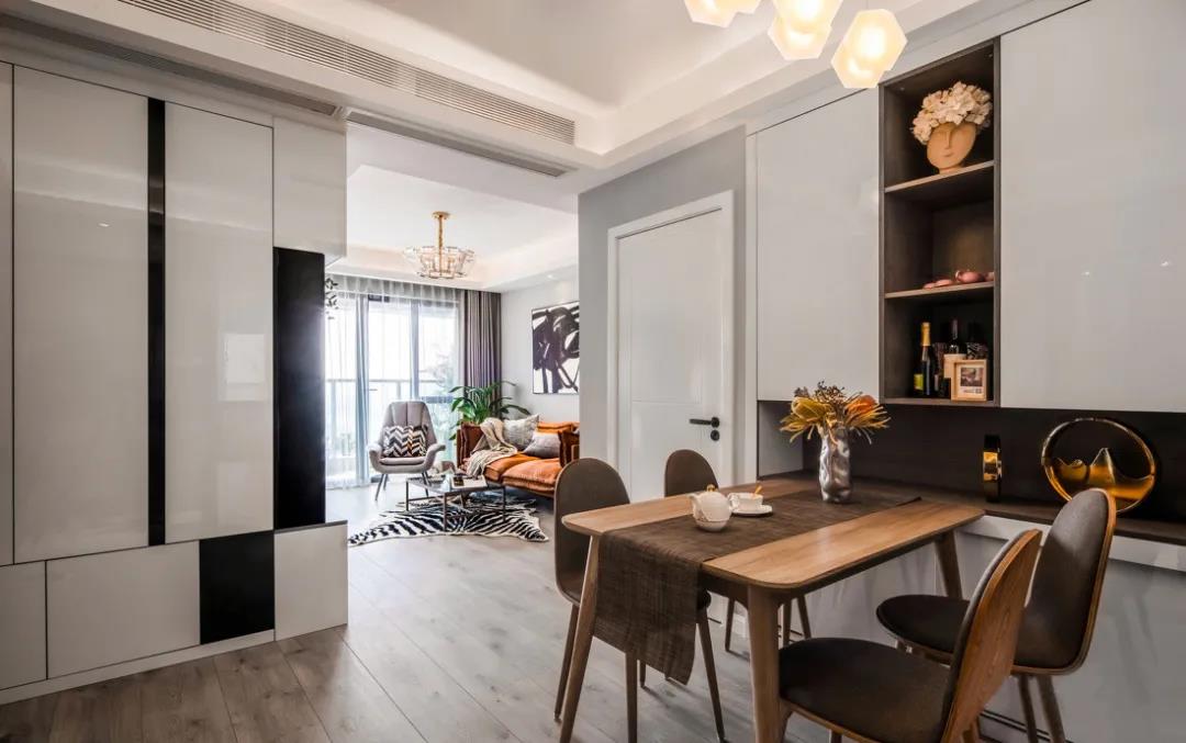 ??如果想要風格換然一新,有住新房的感覺,老氣的護墻板、壁紙全都要拆掉,墻面重新刮膩子、刷白,一側墻面定制了一整面墻的柜子,一面好看的定制柜的確能提高房間的整體格調。