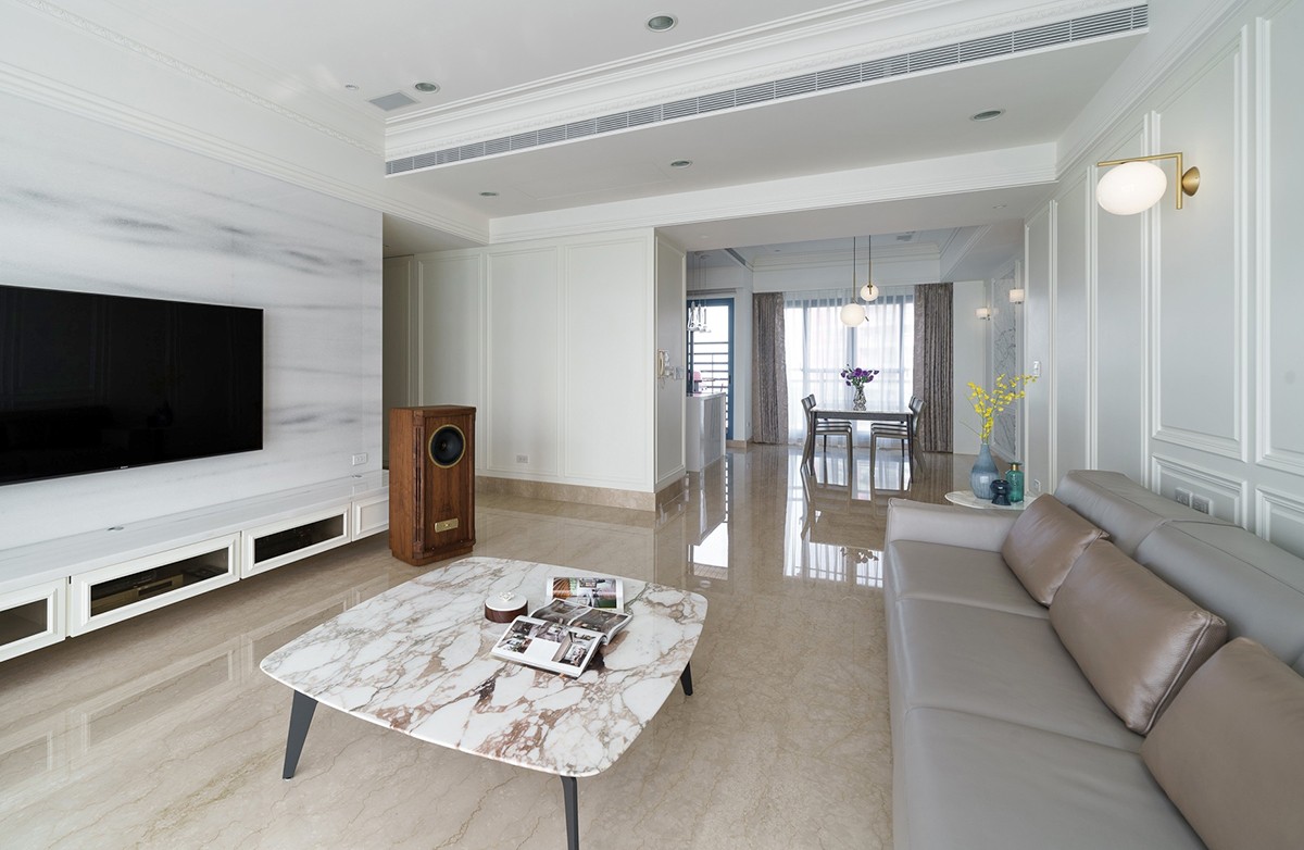 ??3.大面積空白的墻面。簡約風格通常喜歡大面積的空白,墻面不裝飾或只在局部位置簡單的裝飾。