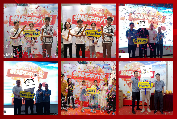 從裝修年中大促活動開始到結束,所有門店幾乎天天都人滿為患,每天都有大量的業主上門了解裝修活動和裝修材料展廳?;顒悠陂g慶祝禮炮響不停,各地區門店接連爆單,整個活動期間捷報頻傳!獲得了眾多客戶的一致好評與認可,業主帶著對新家的美好憧憬,與東家樂家裝成功簽約。