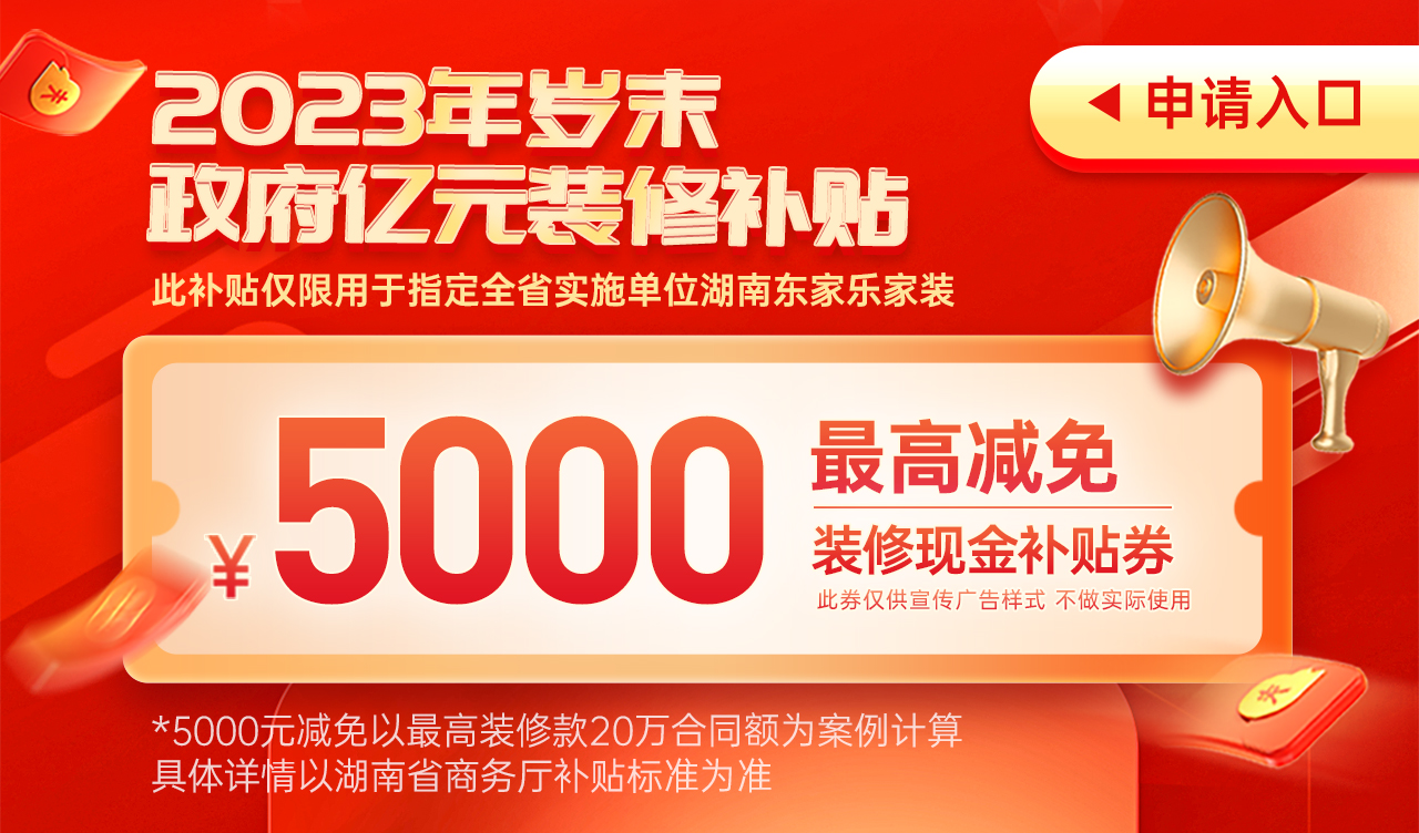 東家樂家裝響應政府號召,促進家居消費,成為本次裝修補貼的實施單位之一,全省30家直營門店均為本次活動的實施單位,消費者在近期裝修最高可領取裝修現金補貼5000元?。ň唧w詳細以湖南商務廳政策為準)另外更有長沙廣電嘉麗購、湖南愛晚頻道媒體感恩送裝修現金補貼,東家樂家裝也為本次媒體補貼活動的實施單位,搶到即賺到,名額不多先到先得?。ň唧w詳細以媒體平臺詳情為準,詳情咨詢客服)
