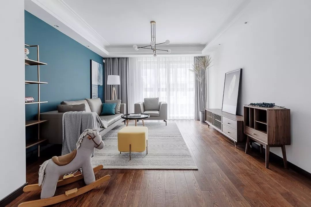 家具配置精簡實用:客廳內不宜過多堆砌家具。一套舒適的長沙發搭配兩把單人沙發已足夠日常使用,如果擔心訪客較多,可備上幾把折疊椅,以便隨時添加而不至于占用過多空間。