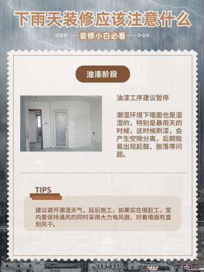 潮濕環境下墻面也是濕濕的,特別是暴雨天的時候,這時候刷漆,會產生空隙分離,后期極易出現起鼓、脫落等問題。
