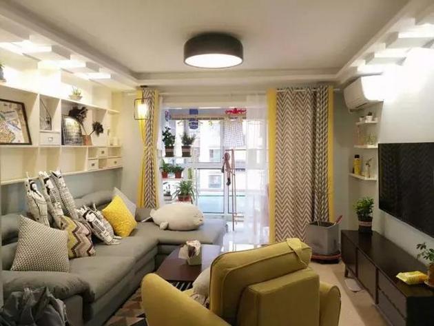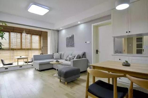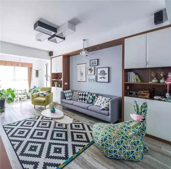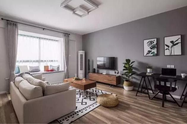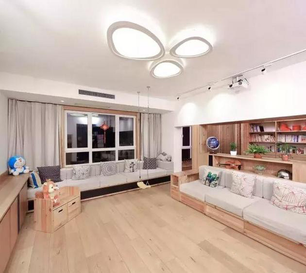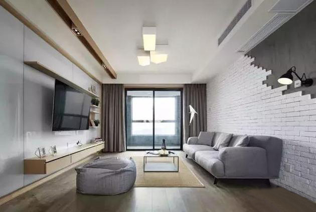 當然,客廳的設計還可以選擇不要茶幾,將沙發與飄窗結合在一起,中間部分留空,這樣客廳的中間就會非常寬敞,家里有小孩也有足夠的玩耍空間。