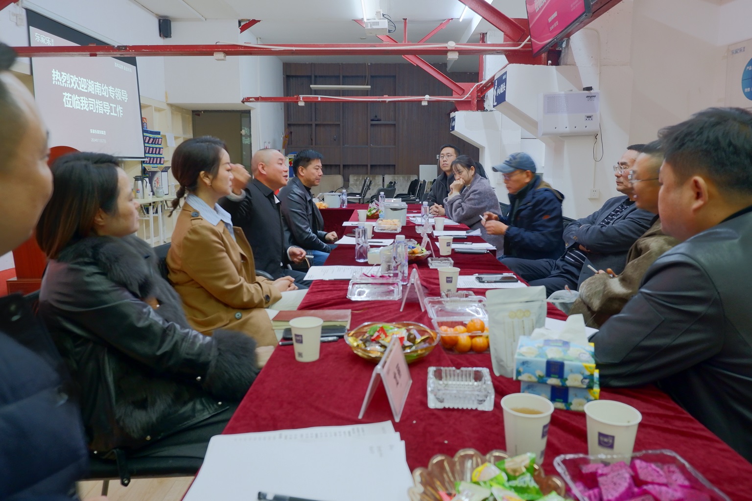2024年11月27日下午,湖南幼兒師范高等??茖W(xué)校與東家樂家裝于東家樂家裝袁家?guī)X公司成功舉行校企合作交流會議,雙方就人才培養(yǎng)、實習(xí)就業(yè)等多方面合作展開深入探討,為校企協(xié)同育人描繪出宏偉藍(lán)圖。湖南幼專黨委副書記、校長高金平,藝術(shù)學(xué)院院長夏銘,藝術(shù)學(xué)院副書記涂海峰,藝術(shù)學(xué)院副院長文平、張群,藝術(shù)學(xué)院設(shè)計教研室副主任周浩等校方領(lǐng)導(dǎo)出席會議。東家樂集團(tuán)董事長張勇、大區(qū)總經(jīng)理龍麗、袁家?guī)X分公司副總經(jīng)理李君、集團(tuán)人力資源副總監(jiān)兼商學(xué)院副院長賈賢杰、以及集團(tuán)總部校企合作執(zhí)行負(fù)責(zé)人劉媛、陳美嫻等共同參與此次交流。