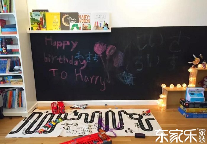 墻面除了卡通壁紙、彩色乳膠漆,也可以嘗試黑板墻、攀巖墻等等設計,可以激發孩子的創作欲望,讓孩子用喜歡的方式去表達他的小世界。