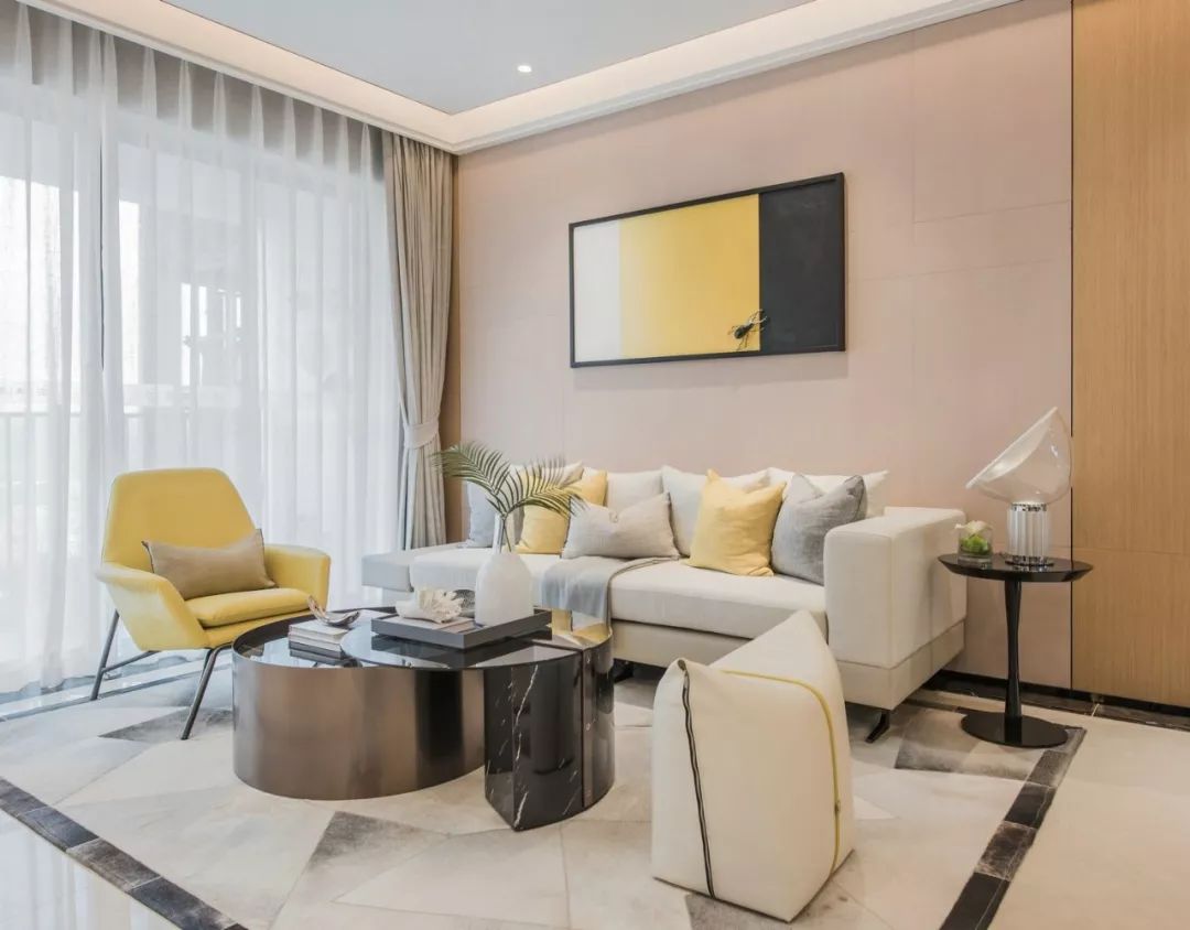 金黃裝飾在客廳的設(shè)計(jì)中,將優(yōu)先考慮兩條長(zhǎng)度相同的線條,垂直線給人更高的視覺(jué)效果,然后創(chuàng)造一種大空間的視覺(jué)感。最后,使用垂直鋪瓷磚鋪裝,使整個(gè)空間有自己的延伸效果,使整個(gè)客廳空間更高,氛圍感更強(qiáng)。