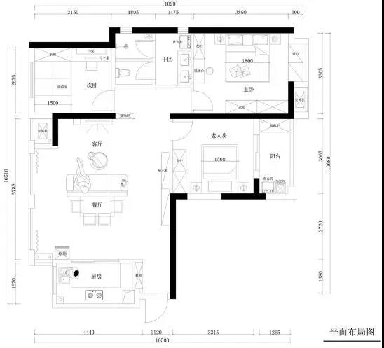 平面圖,設計前后沒有大肆改動原有布局,在細節(jié)上做優(yōu)化,將陽臺打通并入客廳擴大視覺空間。電視墻延伸,銜接水泥做儲物柜,同時隔斷空間。原有的兩個衛(wèi)生間合二為一,設計成三分離,日常更實用。