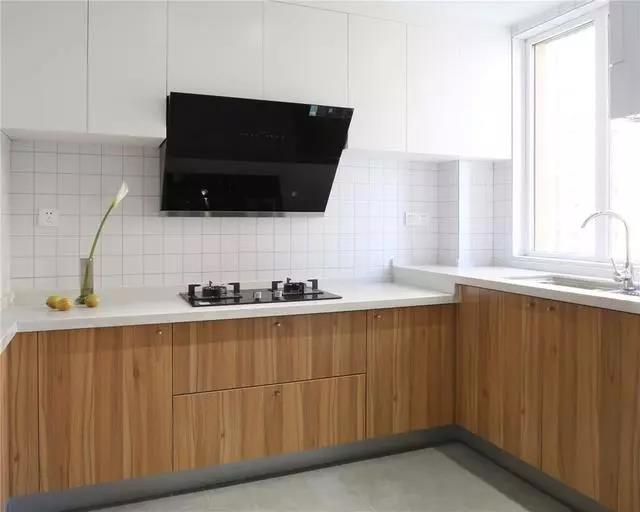 廚房白色搭配原木色,簡潔干凈大方。小白磚素凈簡潔,提亮空間明亮。高低操作臺設計,更符合人體工程學,增加廚房使用幸福感。