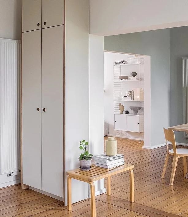 如果喜歡極簡設計的,還可以直接選擇木質格柵和鞋柜的設計,簡約又大方,配合空間整體質樸的風格,顯得溫馨又有設計感。