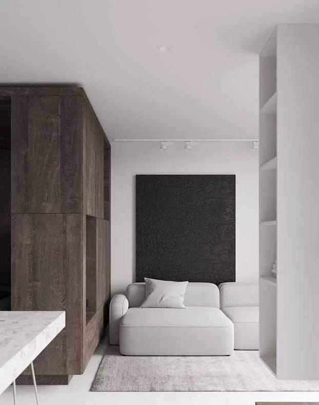 除了以上那些,還有一種實用又美觀的設計方式,那就是在入戶門左邊或者右邊空置的墻面上,定制一排書柜,結合簡易的卡座,就能打造一個小型的閱讀空間和休息空間,整體效果讓人驚艷。