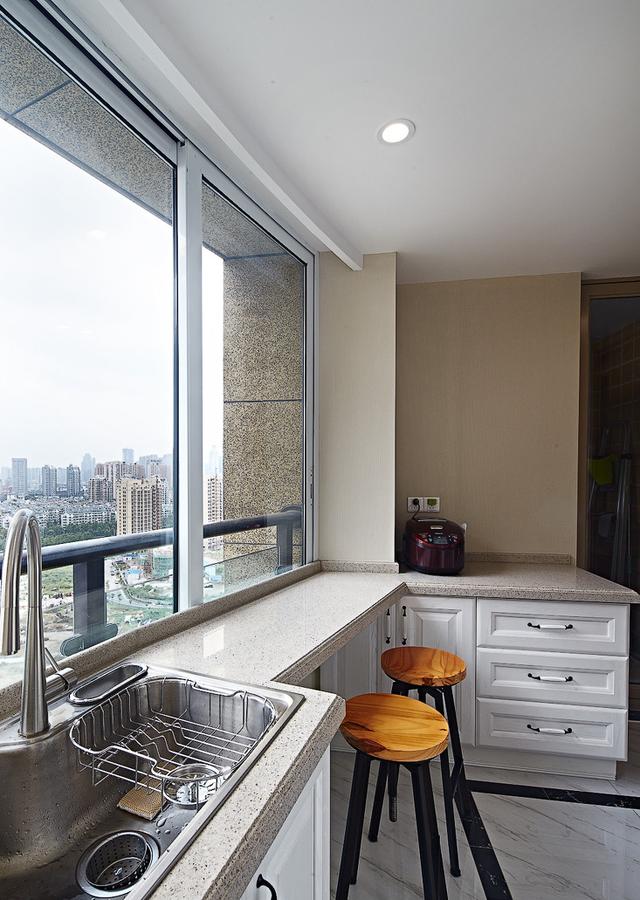 次臥,業主的子女最喜歡的是這間房,很清新簡約,還有個直角飄窗用來休閑。