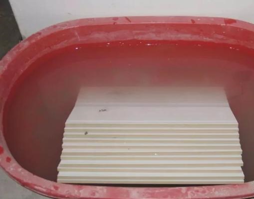 記得陶面要朝下,防止磕碰和刮花,如果施工時間在干燥的夏秋季,可以適當延長泡的時間。