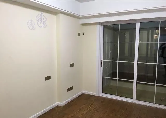 這間我是帶陽臺,地面鋪上了木紋地板磚,墻面是暖色硅藻泥涂上去的,色彩柔和簡單,沒上家具都已經感到溫馨了。