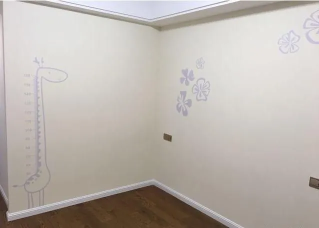 墻面的圖案簡單和不失優雅,長頸圖案可愛,還能隔一段時間測量孩子的身高。