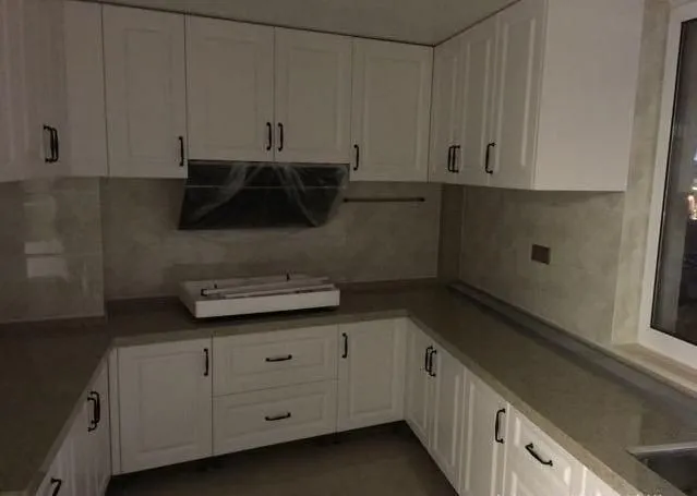 廚房,U形的櫥柜空間,白色的上下櫥柜體現廚房的簡單干凈,灶臺平面和墻面更顯耐看耐臟。