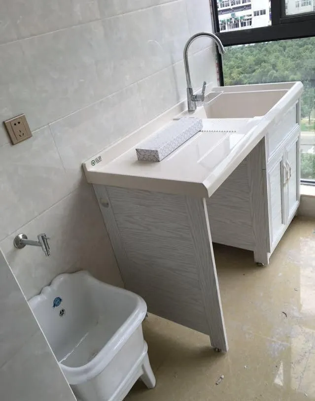 洗衣晾曬的陽臺,落地窗讓采光更棒,加了一個拖把池,拖地板會更加方便。