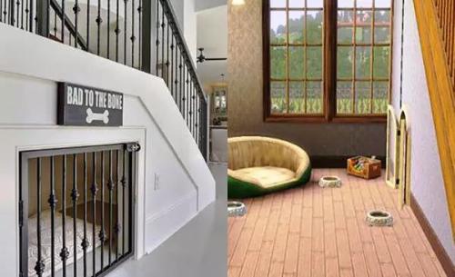 對于家有萌寵的朋友來說,該如何安置自家的阿貓阿狗是個值得思考的問題。隨便在屋里給它做個小窩吧,欠點兒溫馨;給它單獨建個房間吧又沒那個必要。如果有像小復式裝修樣板間那樣,把樓梯處做成一個嵌入式的寵物房,一個水碗、一個食盆、一個小窩、幾件寵物喜歡的玩具,一扇可以讓怕生的寵物在來客人時鉆進去躲起來的小門……愛寵物,就在進行復式裝修的時候為它打造一方這樣的小空間吧!