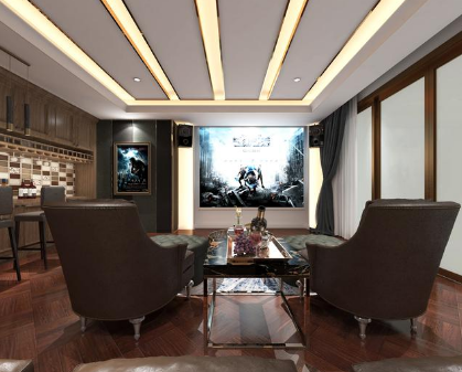影音室相比明快的其他空間要略顯莊重,重色的運(yùn)用是為了更加凸顯投影的方向的視覺(jué)集中性,旁邊的水吧區(qū)在功能上做到了互補(bǔ),是這個(gè)空間的功能完美的形成了閉環(huán),主人在這個(gè)空間中可以做到極致的放松和享受。