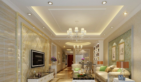 特別是歐式客廳頂部需要有一大池燈光,用華麗的吊燈營造出一種氛圍,門窗上半部多為圓弧形,用帶圖案石膏線勾住,大廳入口處還豎立著兩個豪華的羅馬柱,房間里應有一個真正的壁爐或一個假壁爐形狀,而墻面最好使用壁紙,或選用優質乳膠漆,以襯托豪華效果,地板材料優選為石頭或地板等等;