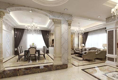 歐式裝修采用濃烈的色彩,精美的造型達到一種裝飾效果。采用了帶有花紋的石膏線溝邊,入廳口處多豎起兩根豪華的羅馬柱,室內則有真正的壁爐或假的壁爐造型。大理石包邊的壁爐顯得更加大氣,奢華。