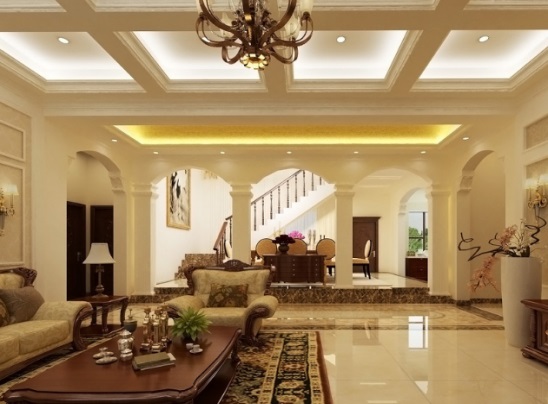 如上圖所示,這是一款歐式格調的居所,因此主人采用的是歐式門洞造型。此類門洞呈現給我們的是歐式風的華麗與大氣。此類門洞兩邊通常采用羅馬柱做門洞的門柱,門洞的頂部采用拱或拱券這種形式,整體布局呈現對稱,體現出了莊重。
