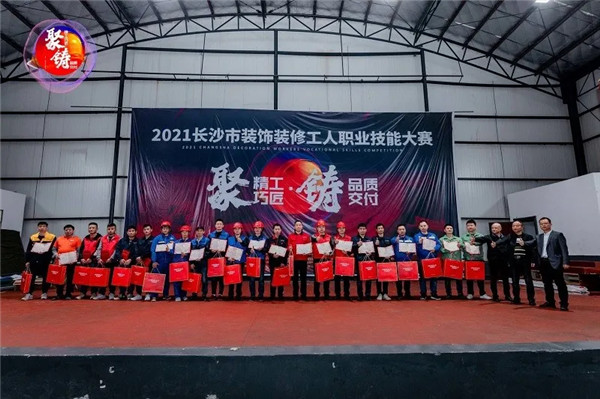乘風破浪展風采,奮勇拼搏創佳績!經過選手們的激烈角逐,經過評委團專業評審,共計有45組選手脫穎而出,獲得由長沙市建筑裝飾裝修行業協會頒發的“精工巧匠標桿個人”榮譽。同時也向表現突出的參賽單位頒發了大賽優秀組織獎,以資鼓勵。
